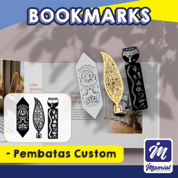 PEMBATAS / BOOKMARKS >> Ukuran 5X15 cm, Paket Isi 10 PCS PEMBATAS, Harga sudah Termasuk Die Cut, Tersedia 2 BAHAN (Ivory 230/260), Tersedia 5 Bentuk