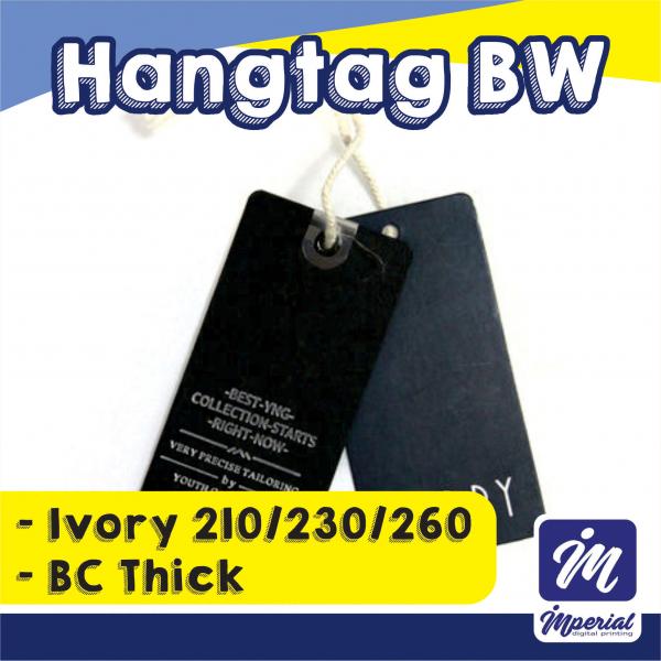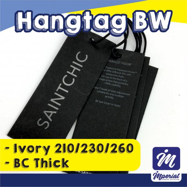 PAKET IVORY BWL-1 >> Warna Hitam Putih, Cetak 1 sisi, Bahan kertas ivory 210/230/260/BC Thick, Isi 100 hangtag, Ukuran 6,7 x 13,3 cm