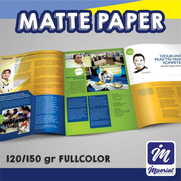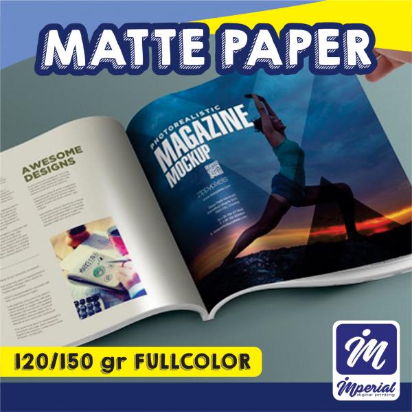Matte Paper memiliki permukaan tidak berkilau. Sering digunakan untuk mencetak majalah karena bisa memberi nuansa doff, sehingga terkesan elegan. Matte Paper lebih cepat meresap tinta dibandingkan dengan kertas Art Paper.